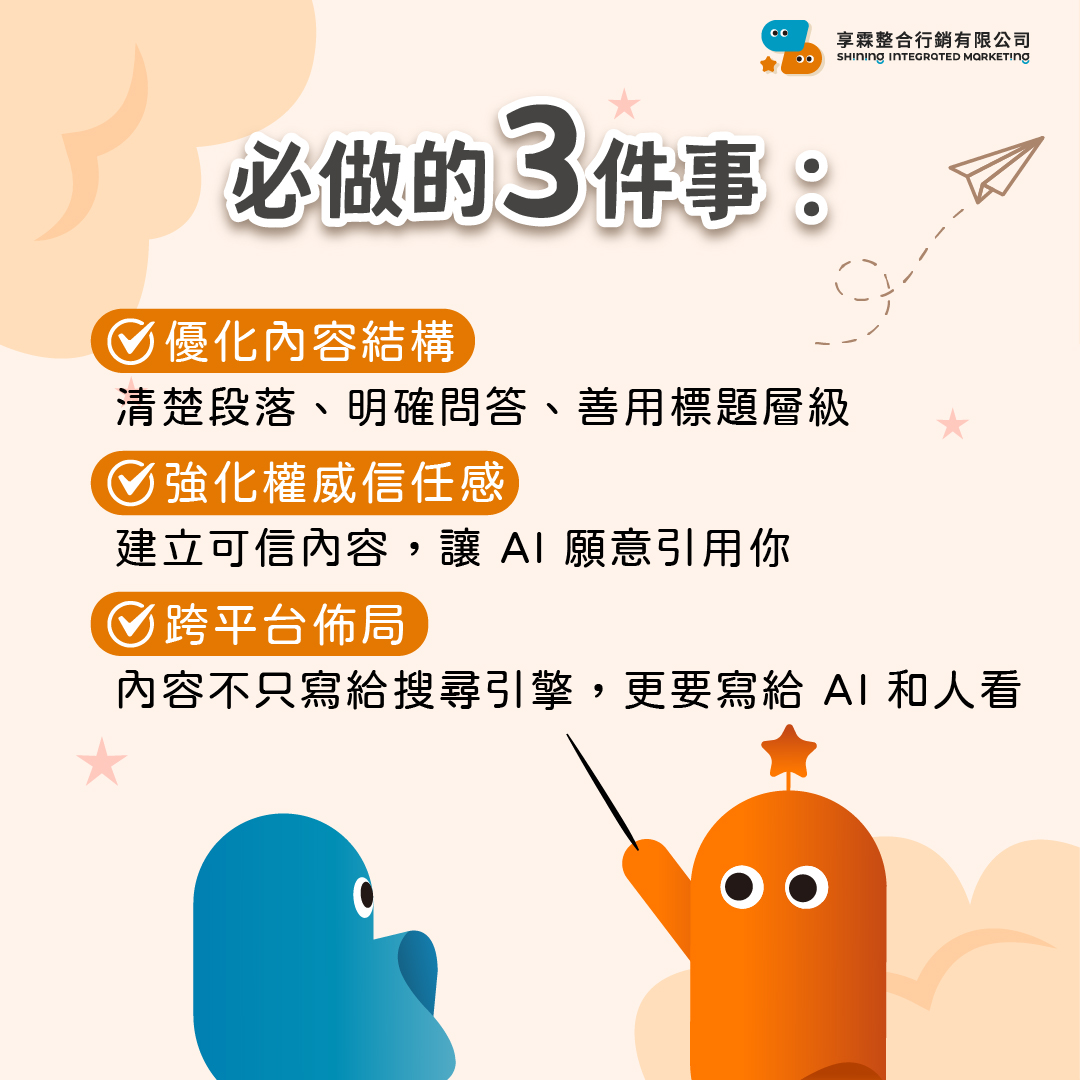 不再只是為了「排名」而做 SEO,而是為了讓 AI 能看懂、願意引用你的內容