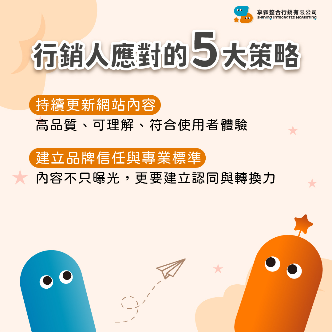 → E-E-A-T(經驗、專業、權威、可信)會成為決定曝光的關鍵
