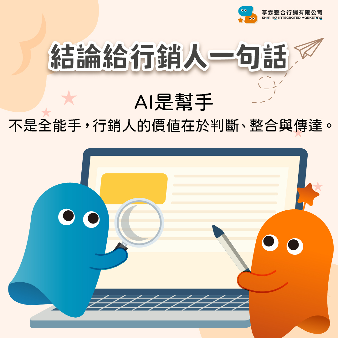 「AI 是幫手,不是全能手,行銷人的價值在於判斷、整合與傳達。」