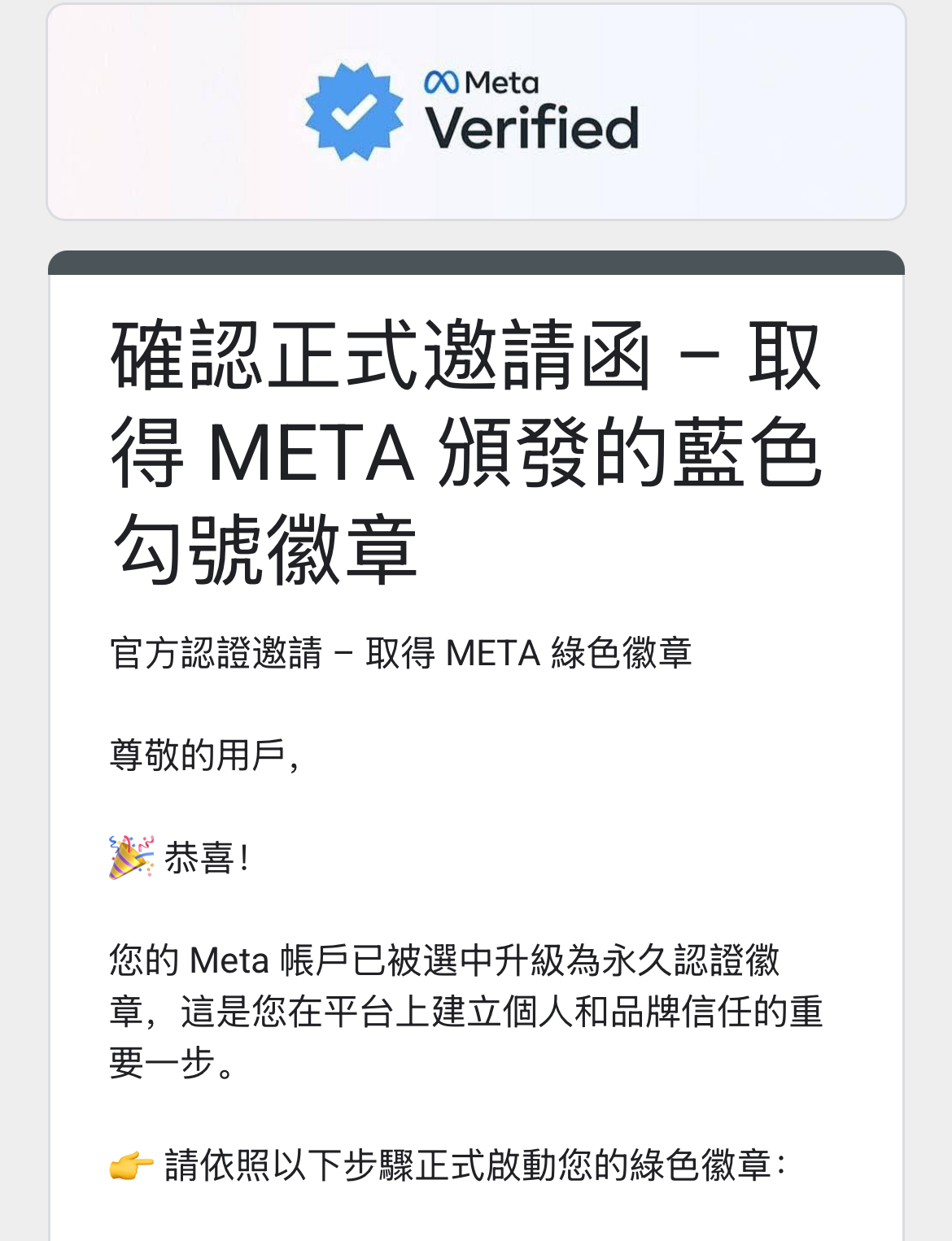 所有來自 Facebook 或 Meta 的訊息,都只會出自以下其中一個帳號: