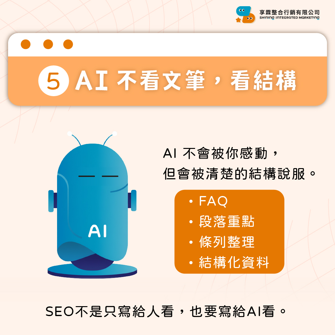 FAQ、段落重點、條列整理、結構化資料,都是在幫 AI 更快理解你在講什麼