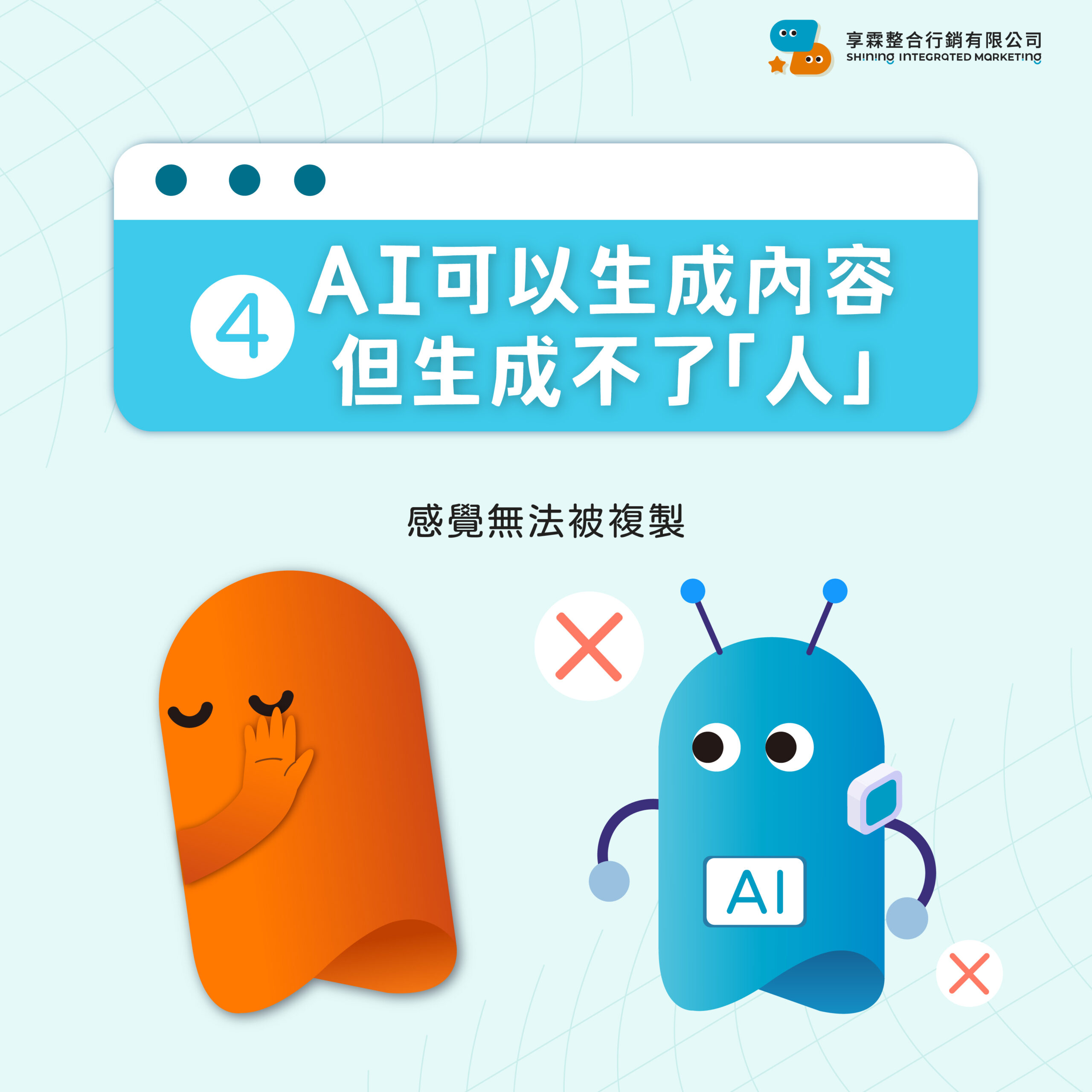 所以很多AI內容會讓人覺得好像不錯,但沒有感覺。但品牌真正需要的,從來不是資訊,而是連結,那種讓人覺得「你懂我」的感覺。這也是為什麼,在AI越強的時代,「人味」反而變成競爭力。
