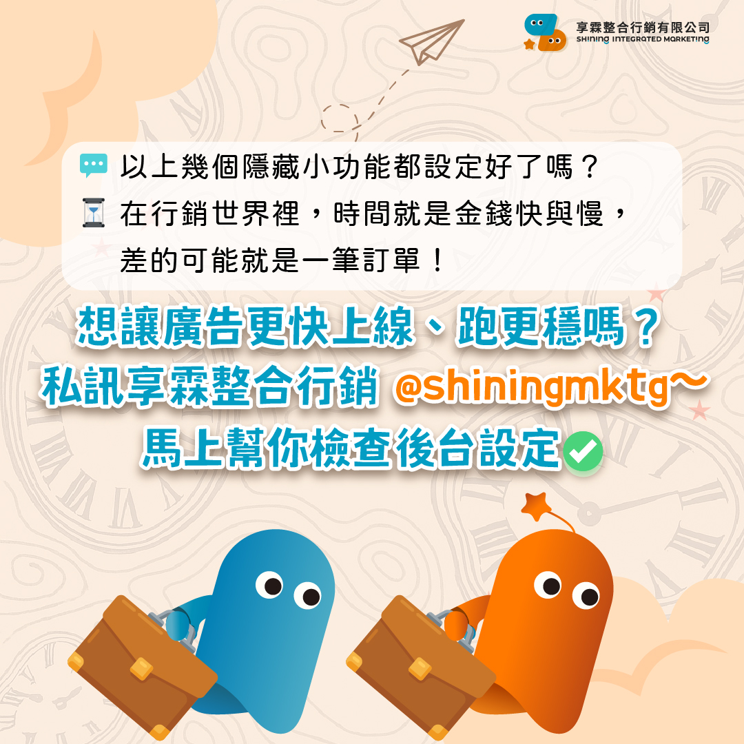 想讓廣告更快上線、跑更穩嗎?私訊我們,馬上幫你檢查後台設定!